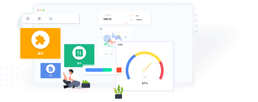 提供图形化界面、组件拖拽、模型驱动的方式,构建Web、移动应用以及小程序